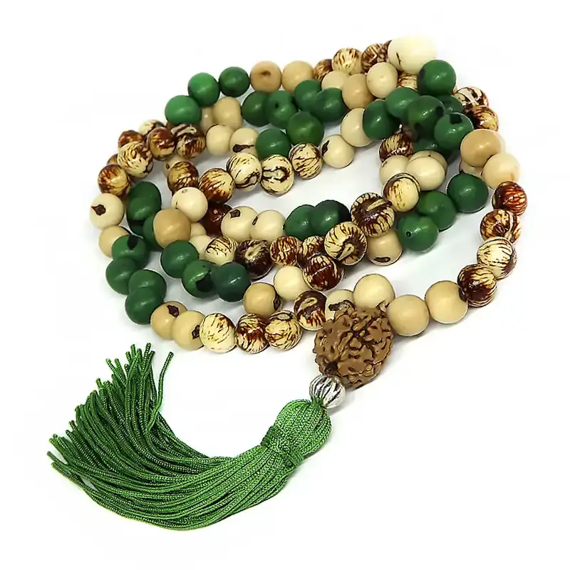 Aprofunde sua prática espiritual com Japamala Verde Renovação 108 Contas, Sementes de Açaí e Rudraksha da Tríade Zen.